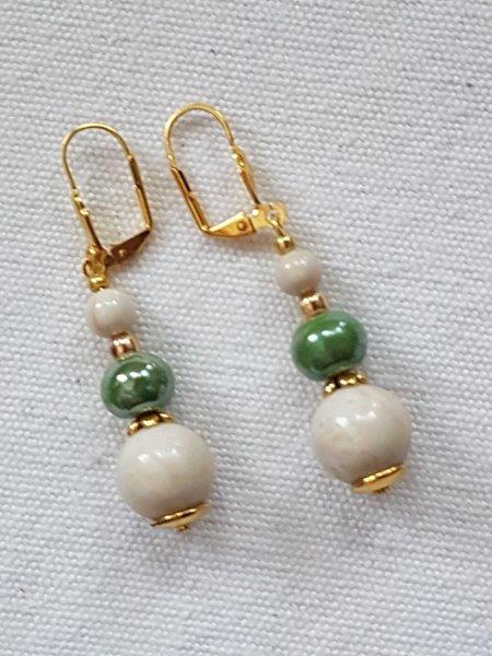 Perles de céramique chinoise verte Fermoir et perles de jonction en métal doré Montage sur câble